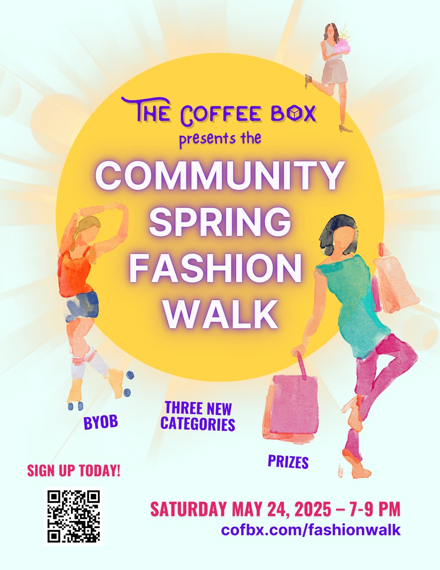 The Coffee Box is proud to highlight the talents of local fashion designers at the Community Spring Fashion Walk. Featuring three design categories Bright & Beachy, Prom Prance and Out & Proud. There will be prizes, and volunteer opportunities for photographers, videographers, hair and make-up artists & stylists. BYOB. For more information go to cofbx.com/fashionwalk to sign up.