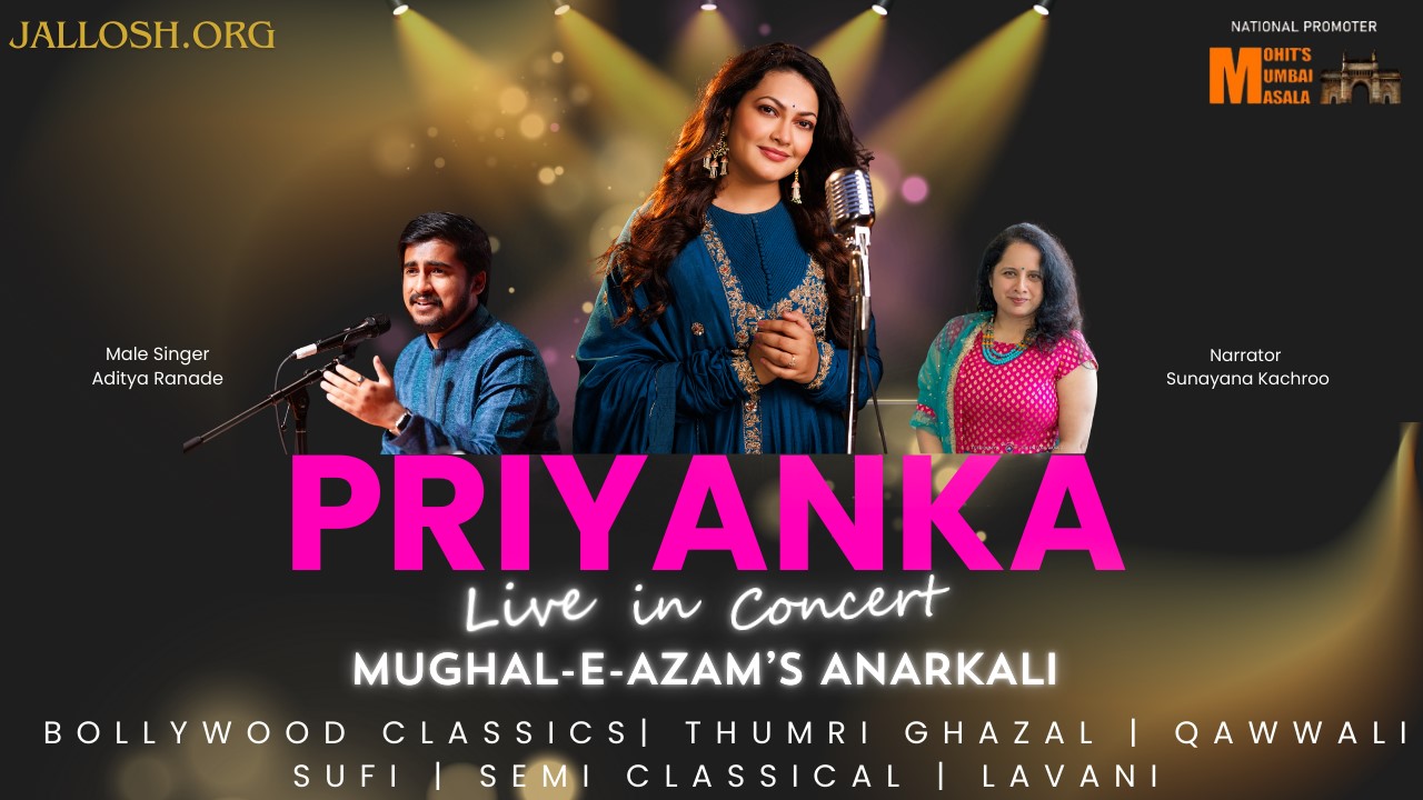 Priyanka Barve Live in Concert. Doors open at 6 PM. Priyanka Barve pays tribute to the legendary female singers who inspired her! Enjoy varied genres of music, such as Bollywood classics, Ghazal, Thumri, Sufi, Semi Classical, Sufi, Lavani, Qawwali, and many more. Joining Priyanka onstage is Sunayana Kachroo, narrator and Aditya Ranade, male vocalist plus six incredible musicians from India. For more information go to PRIYANKA BARVE LIVE IN CONCERT –