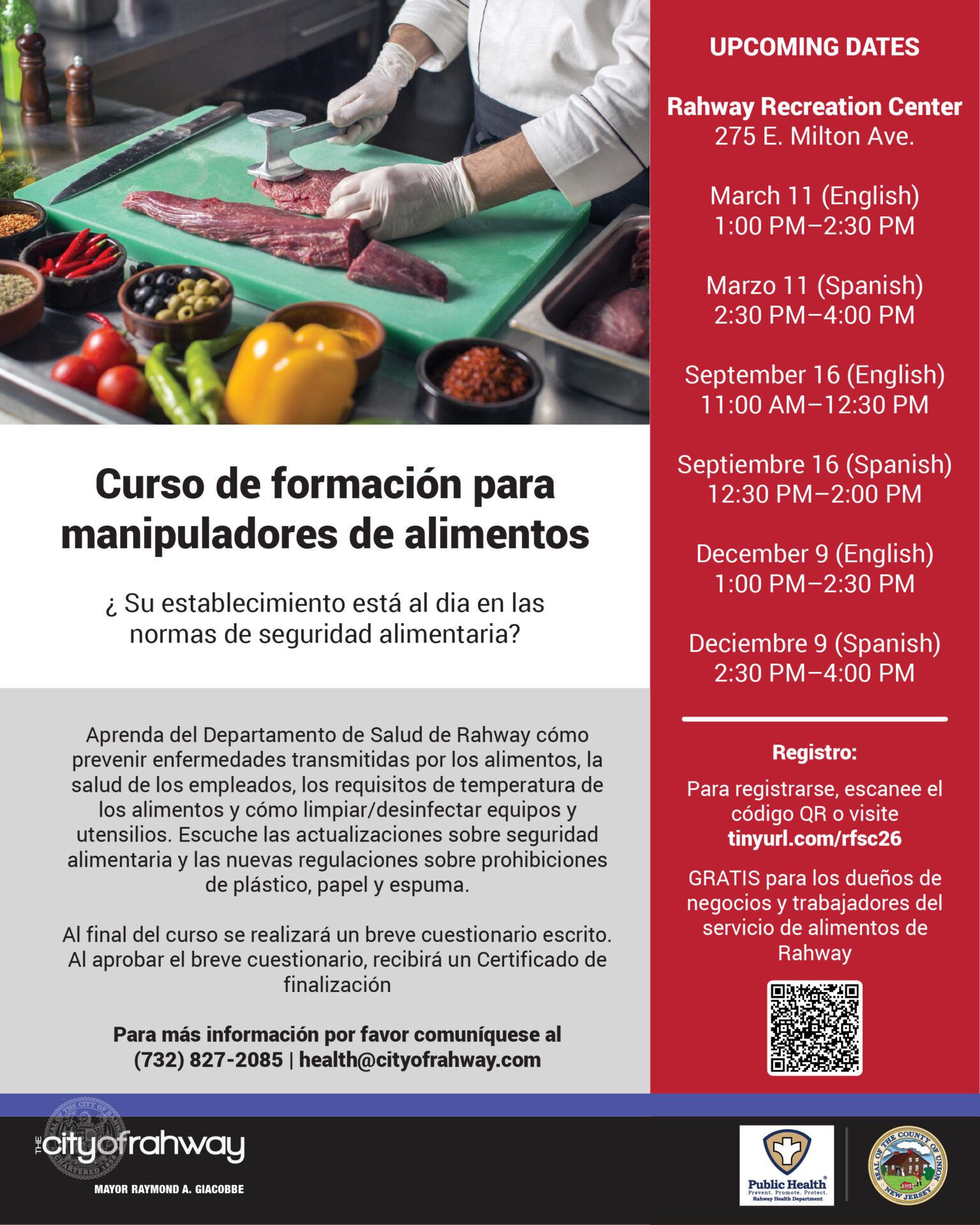For more information, please contact the Rahway Health Department at (732) 827-2085 or health@cityofrahway.com