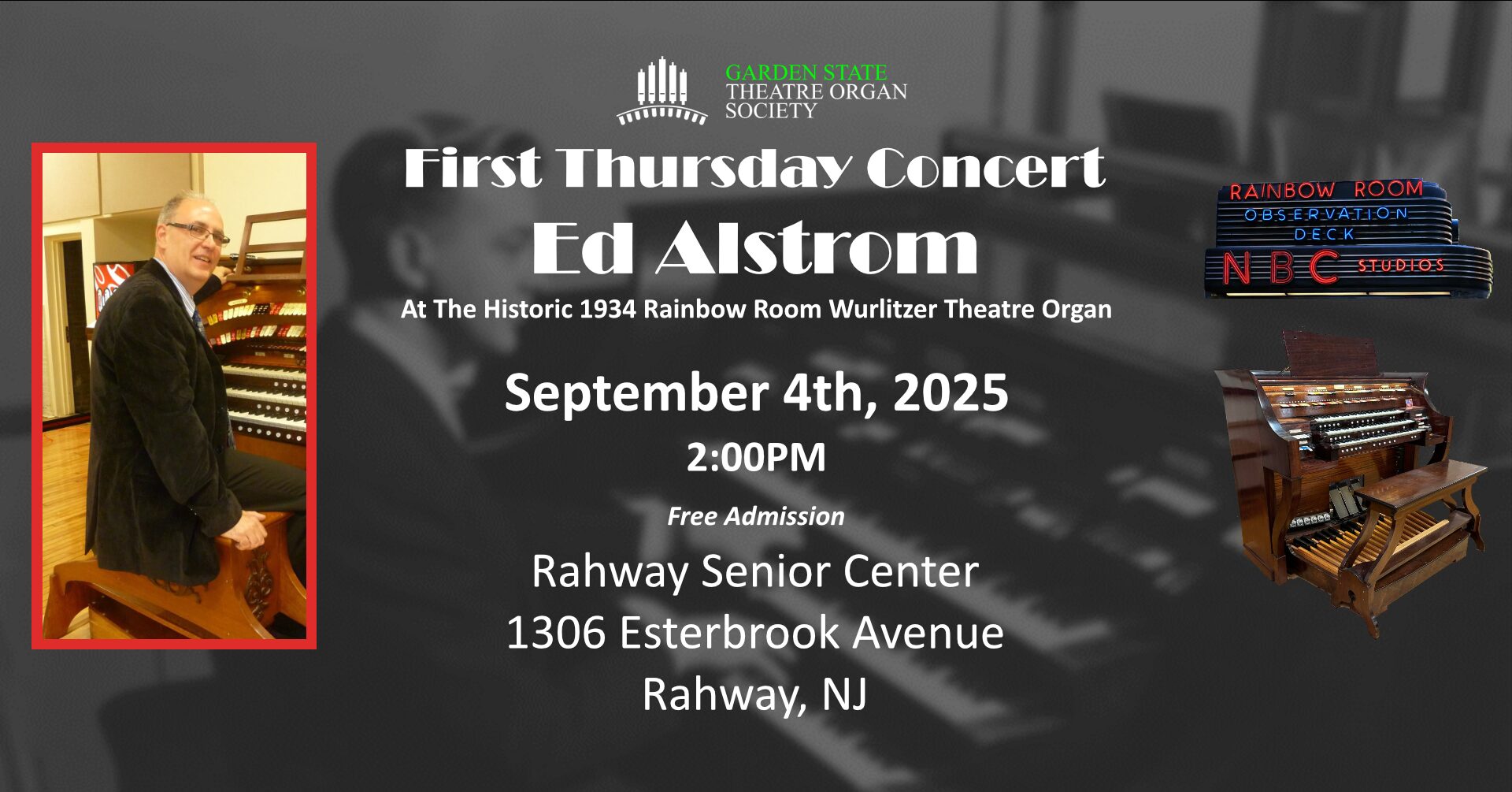 Brought to you by the Garden State Theatre Organ Society. Featuring Ed Alstrom.